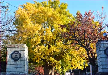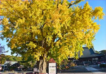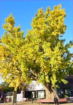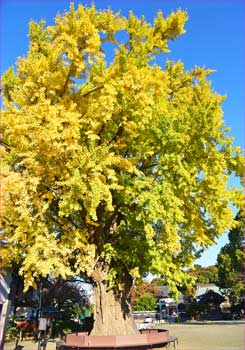 | 境内入り口から大銀杏 | 大銀杏色づいて |