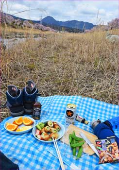 ![]() (狩川の河原で花見宴) |